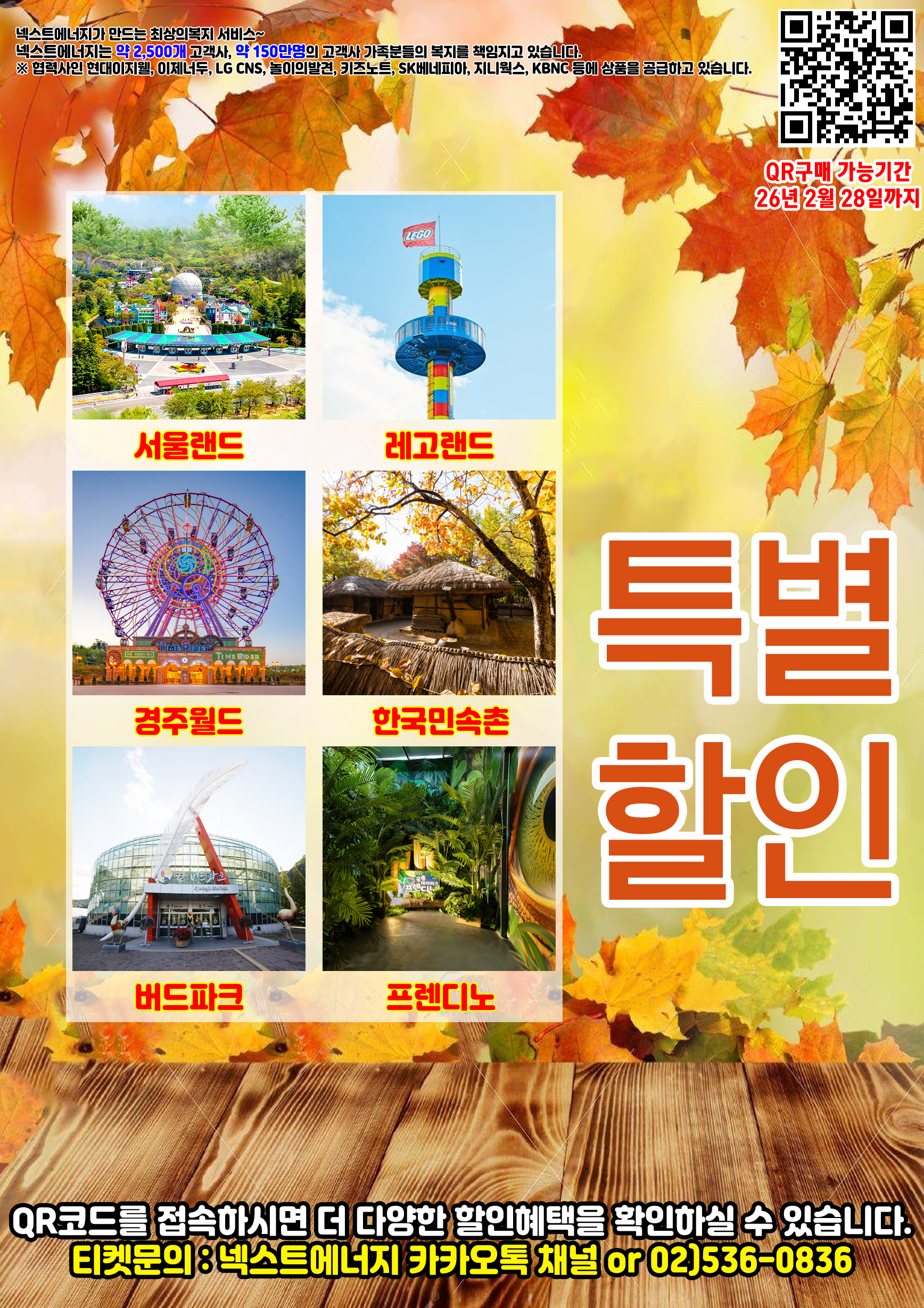 ▶ 넥스트에너지 - 상품안내 : 전국 테마파크 및 휴양시설 할인 - 구매기간 : ~ 2026년 2월 28일까지 - 구매방법 : 구매사이트 접속 (클릭) * 주문 시 <회사 및 기관명>에 "안성상공회의소" 입력