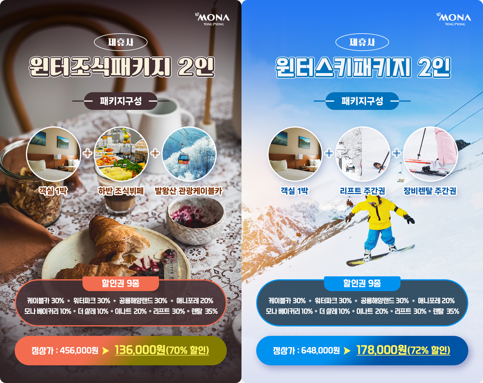 ▶ 용평리조트 - 이용안내 : 모나용평 객실 및 부대시설 할인 - 이용기간 : 연중 - 예약방법 : 제휴사이트 접속 (클릭)