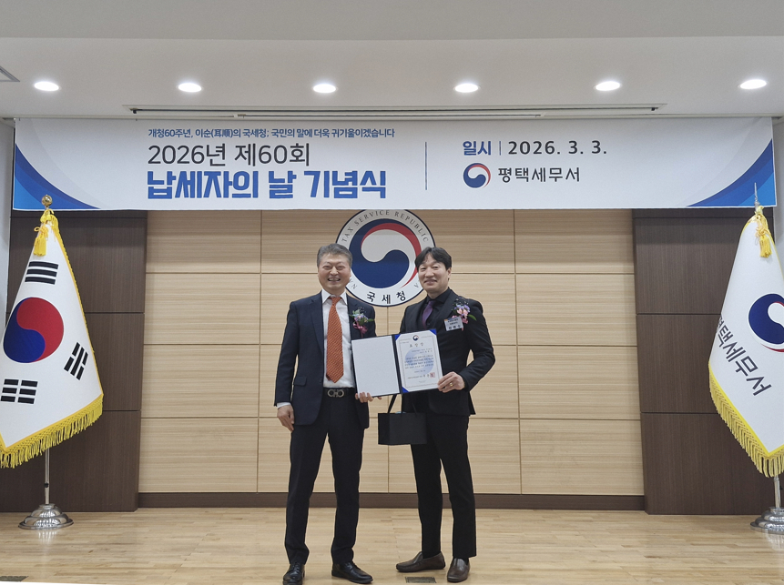 제60회 납세자의 날을 맞아 안성 관내 기업인 농업회사법인지엔티(주) 한현수 대표이사는 재정경제부장관표창을 그리고 대성유통 이용길 대표는 평택세무서장 표창을 수여 받아 모범납세자로 선정되는 수상의 영예을 안았다.